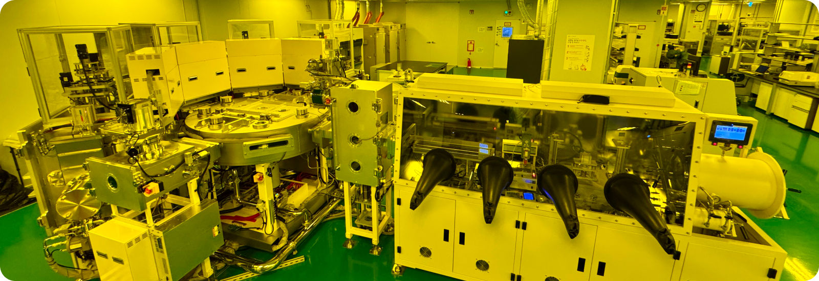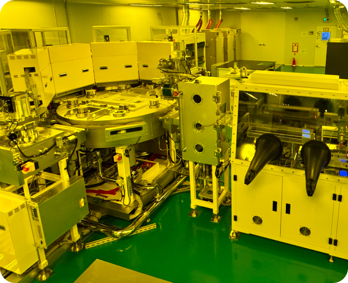 증착 : 3 Organic Chamber(6 source/ch) – Source port 8EA 1 Metal chamber (4 source/ch)